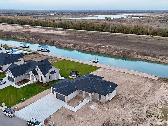 The Del Mar II by Robl Building Company — Waterfront Luxury in Castaway! Welcome to The Del Mar II, an exquisite new lakefront home by Robl Building Company, perfectly situated on a cul-de-sac lot in one of Wichita’s most desirable neighborhoods — Castaway. Enjoy life on a 135-acre, spring-fed boating lake, offering full recreational use right here in Wichita! Step inside this timeless home and be greeted by a grand front elevation and a light-filled entryway that opens into the spacious living room. You’ll be captivated by the soaring ceilings, expansive picture windows framing breathtaking lake views, rich wood floors, and a floor-to-ceiling stone fireplace that serves as the perfect focal point. The chef-inspired kitchen is designed for both function and beauty — featuring a large island, granite countertops, gas range, abundant cabinetry, and a walk-in pantry with an appliance counter. The adjacent dining area offers plenty of space for entertaining and leads seamlessly to the covered deck, perfect for enjoying sunset views over the water. The luxurious Master Suite is a true retreat, boasting a spacious bedroom, spa-like bath with dual vanities, a custom tile shower, and a huge walk-in closet with direct access to the laundry room. Additional thoughtful touches include a drop-zone bench at the garage entry and a guest powder bath off the main living area. Two more generous bedrooms and a full bath complete the main level. The fully finished walk-out lower level features 9-foot ceilings, a large family room with wet bar, private office with LVP flooring, two additional bedrooms, and a full bath. Step outside to a covered patio that opens to your own private beach area — ideal for lakeside relaxation or gatherings. With ample space for a future pool or sport court, this home is built for both comfort and lifestyle. Living in Castaway means more than just a beautiful home — it’s a true community. You’ll enjoy a lakefront clubhouse and pool, playground, basketball court, and the kind of views you just don’t find anywhere else in Wichita. Come experience The Del Mar II — where timeless design meets lakeside living. Schedule your private showing today! Please note that the finished interior pictures are from a home previously built in the neighborhood and exact finishes will vary. Please see the associated documents for a copy of the selection guide for this particular home. Some information may be estimated and is not guaranteed. Please verify schools with USD 266.