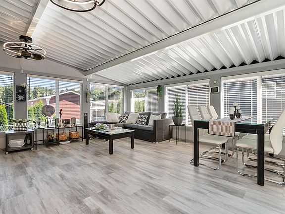 Beautiful and spacious 2 bedroom 2 bathroom senior-friendly manufactured home in private and well maintained park. Grace Estates is situated in a scenic location along the Fraser River and offers a unique country setting. This well built and lovingly maintained home features a large but cozy 15'7 x 17'3 sunroom for year round enjoyment. New A/C and back up generator system to keep you comfortable. High end appliances with upgraded induction range. 12' x 24' detached garage with whisper quiet opener. Large master bedroom with w/i closet, low rise shower enclosure and double sinks. Main bathtub has cut away for easy access. Comfort height toilets in both bathrooms. Luxury vinyl flooring. Fenced yard with low maintenance landscaping and more. Pad rent $575/month. Pets OK. RV parking. 45 plus.