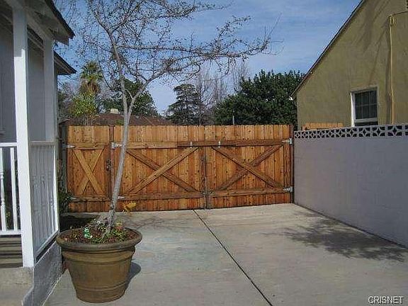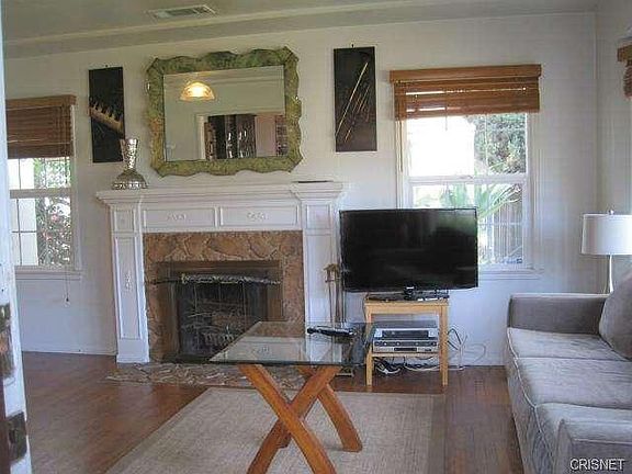 Tucked away in a great Valley Village neighborhood, sits this charming, well maintained traditional home. Walk in to an inviting living room with fireplace, hardwood floors and coffered ceiling. Passageway leads to dining area and kitchen. Kitchen has newer counter tops and built in dishwasher. Off kitchen you will find laundry room, currently being used as an office and an additional pantry area, also being used as an office. 2 bedrooms with hardwood floors, large closets are located on opposite sides of hall bath with tub and shower. Additional features include double pane windows, central air and heat, lots of storage, ceiling fans, newer driveway and gate with RV access. Best of all, your clients will love the fully sound proofed 2 car garage with high quality wood laminate floors. Great for musicians, dancers, photographers, editing room and more. Separate office attached to rear of garage with private patio. Lush manicured yards, with covered patio and tree swing for great outdoor gatherings complete this adorable home.Centrally located close to transportation, parks, studios, Metro and Orange Line. REDUCED!!!! GREAT LOCATION!!