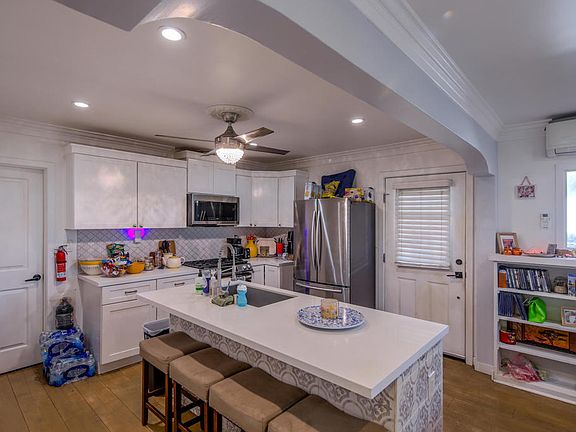 Beautifully remodeled contemporary homeGourmet kitchenModern finishesSleek spanish tile backsplashState-of-the-art stainless steel appliances