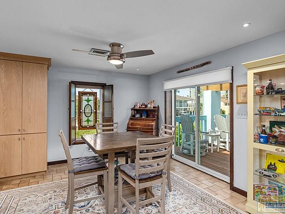 Welcome to 5907 Tropical Blvd, a stunning Santa Fe-style 2-story home in the heart of South Padre Island, TX. This 3-bed, 3-bath retreat offers privacy in a neighborhood prohibiting short-term rentals, perfect for those seeking a serene escape. The first floor features a 2-car garage, den, mini-master suite with bath, secondary kitchen, and access to a fenced backyard with a sparkling swimming pool and gas-heated hot tub. Upstairs, enjoy an open living area, updated kitchen with island, dining space, and balconies with neighborhood views, plus a luxurious master suite and guest bedroom. Built with durable masonry, this home boasts storm windows/doors, a Generac whole-home generator, water softener, lush tropical landscaping, and an elevator for convenience. Fully furnished (excluding seller's antiques/personal items), this 60'x142' lot oasis blends elegance and functionality. Ideal for tranquil coastal living! Contact for a private tour.