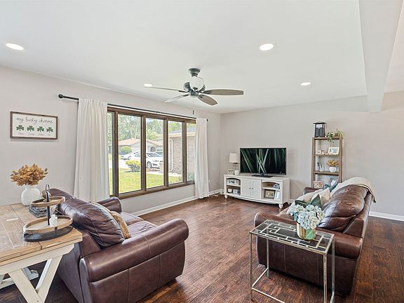 Welcome to this beautifully updated 3-bedroom, 2-bath brick split level home nestled on a gorgeous lot in the sought after Palos School District. Step inside to find a sun drenched living area, stunning hardwood flooring, and an open, updated kitchen with modern finishes. Enjoy the spacious chef's dream kitchen showcasing custom cabinetry, quartz counters, stainless appliances and a beautiful functional island with electricity. Both full baths have also been updated, one shared with the primary bedroom, granite counter vanities. Enjoy the usable lower level family room with access to the garage. The kitchen patio doors open up right into the expansive, fully fenced backyard featuring a concrete patio, storage shed and fun playset- ideal for entertaining or relaxing. Roof approx 5 years, HVAC about 10, heated attached 2.5 car garage. Spacious closets throughout and plenty of storage. Ideal location near schools, parks, public transportation, shops and restaurants, this home offers comfort, convenience, and great curb appeal.