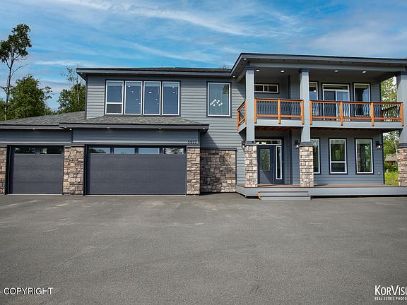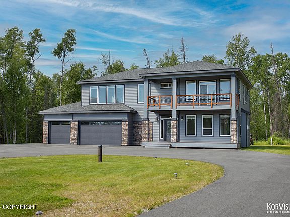 Welcome to 5907 W Lucy Creek Cir, an exquisite luxury residence nestled in the serene surroundings of Wasilla, Alaska. This stunning home boasts 2,825 sqft of elegantly designed living space, featuring 3 full bathrooms and 1 half bath, ensuring comfort and convenience for the whole family.The heart of this home is the open kitchen, a culinary enthusiast's dream, adorned with beautiful -quartz countertops and modern under-cabinet lighting. The stainless steel appliances and a spacious island make this kitchen perfect for both meal prep and entertaining guests. Experience unparalleled ambiance with subtle lighting behind the crown molding, enhancing the sophisticated design of the home. With two spacious living areas, there's ample room for relaxation and entertainment. Multiple decks provide the perfect vantage points to enjoy the breathtaking Alaskan landscape. The luxurious master bedroom, located upstairs, offers a private retreat with plenty of space to unwind. Additionally, the first level accommodates three generously sized bedrooms, perfect for family or guests. Situated on a sprawling 1.88-acre lot, this property features a semi-circle driveway, providing both convenience and an impressive entrance. Embrace the serene beauty and luxury living that 5907 W Lucy Creek Cir offers. This exceptional home is truly a rare find in the Alaskan real estate market.