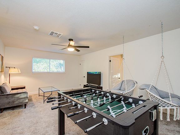 This home boasts not one but two separate living rooms! Both living rooms are equally inviting with comfortable couches, modern coffee tables, and aesthetic touches to create a comfortable environment for all. The upstairs living room also has a foosball table for those looking to bring their A-game!