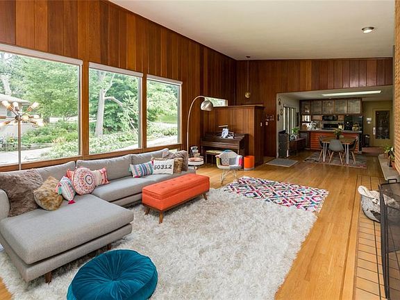 Mid Century Modern at its finest! Upon entering, you will fall in love with the unique architecture and beautiful finishes this house has to offer. The living room features a panoramic view, hardwood floors, redwood paneling and a stunning floor to ceiling brick fireplace. The bright and sun filled kitchen is impressive to say the least. Concrete counter tops, ample storage space, gas stove and pantry w/ built in coffee bar will leave you breathless. 3 generously sized bedrooms, all with large windows and hardwood floors and 2 bathrooms finish off the main level. Head downstairs to the finished walkout basement to find a second living room, ¾ bathroom and a non-conforming 4th bedroom! Close to shops, restaurants, parks, trails and easy freeway access. This one of a kind home is a must see!