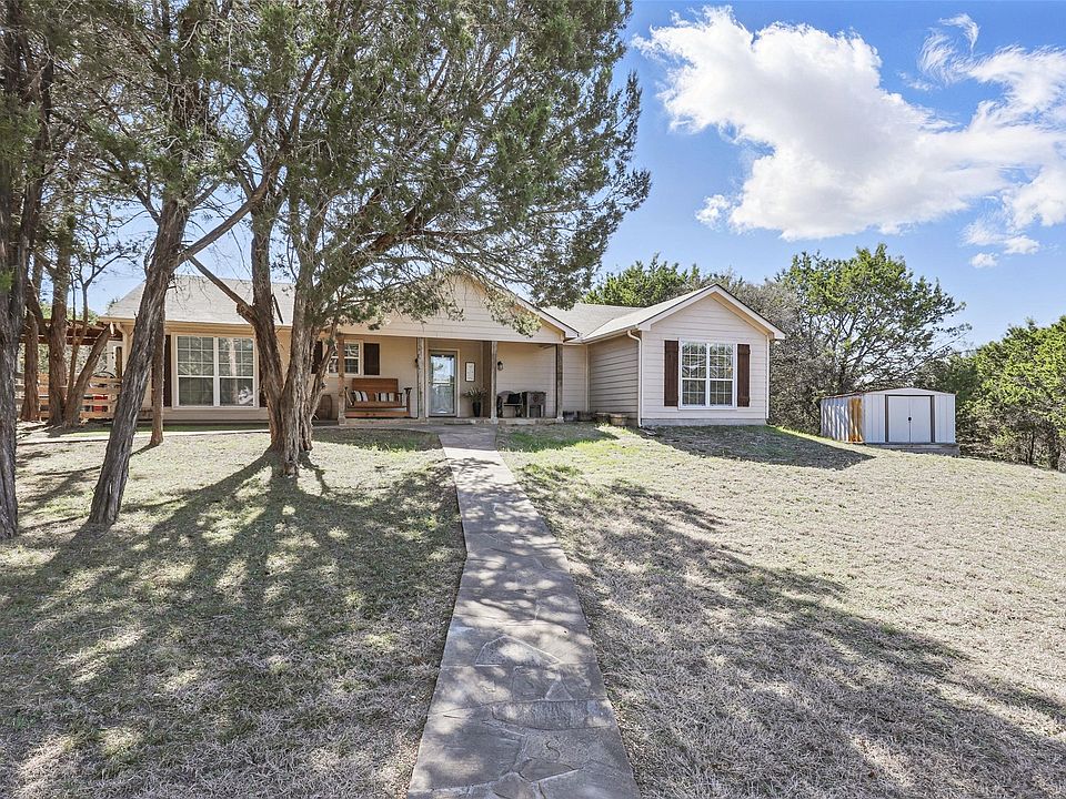 Country Living at its BEST!! NEW ROOF! Discover serene country living in this delightful 3-bedroom, 2-bathroom home nestled on 2.36 picturesque acres. Just a short 10 miles to the Granbury Square, this property offers a tranquil retreat with modern amenities amidst the rolling terrain and a seasonal creek, perfect for those seeking peace, privacy, and nature at their doorstep. The home is thoughtfully set beyond an electric gated entrance, providing both security and a grand sense of arrival. Step inside to find a thoughtfully designed open floor plan, highlighted by a super-sized living room that seamlessly flows into the breakfast area and open kitchen. The interior boasts upgraded luxury vinyl plank flooring and neutral paint, allowing for a versatile backdrop to personalize. The kitchen features stainless steel appliances and plenty of cabinets and a bar for entertaining. The spacious master bedroom provides a restful haven, while the split bedroom configuration ensures added privacy. The exterior of the home is a true extension of the living space. Relax or entertain on the beautiful flagstone patio under a huge pergola, complemented by flagstone walkways, porches and pet grass..... ideal for enjoying Texas sunsets. The property features practical additions such as RV hookups, 2 outdoor storage buildings and one large workshop, gutters, and a 2-car carport. A water well and aerobic septic system add to the home's self-sufficiency. Wildlife such as foxes, turkeys, and roadrunners often grace the property, enhancing the allure of country life. Without the restrictions of an HOA, you have the freedom to truly make this property your own. This charming Lipan residence offers a perfect blend of comfort, convenience, and connection to nature. Bring your ANIMALS. Don't miss your chance to see this enchanting home.