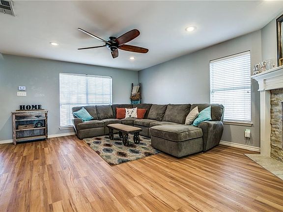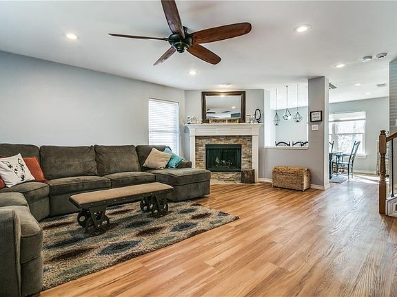 Searching for a completely updated home in a great area? Look no further! Situated in Woodbridge, this home backs up to a serene greenbelt and boasts tasteful updates throughout. Kitchen features quartz counters, shiplap two tone cabinets. Living area has natural stone fireplace with gas logs. Utility room has custom shelving and a family drop zone. Master suite features updated master bath with granite and custom closet system plus room for sitting area. Spacious secondary bedrooms with large closets. Secondary bathroom updated with granite. 4th bedroom has french doors and could double as office. Security cameras & Ring Doorbell convey. Close to park, pond and playground. Several pools and golf! Don't miss!