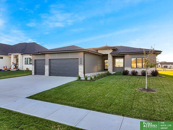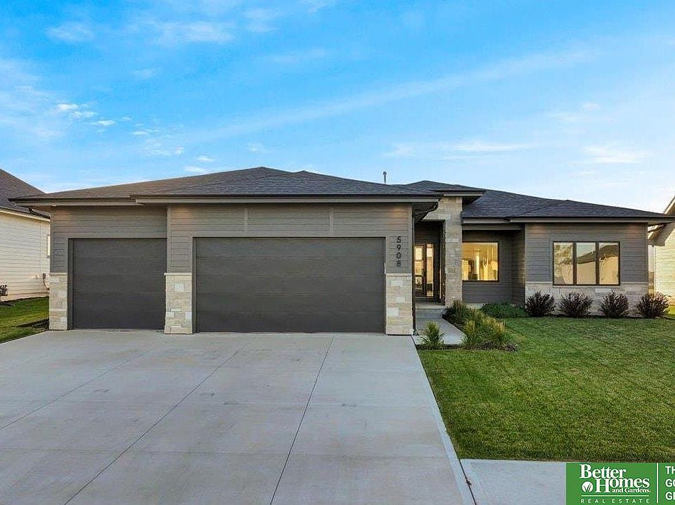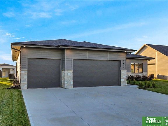 Discover the ease of living in this 5-bedroom, east-facing ranch home in the Calarosa neighborhood in Elkhorn. Three bedrooms are conveniently located on the main level, with bedrooms 2 and 3 split from the primary. Large windows welcome stunning sunset views into the living spaces, complemented by modern black fixtures and quartz countertops throughout. The lower level features two additional bedrooms (1 with a walk-in closet) and a wet bar. You can enjoy the convenience of the planned neighborhood park just adjacent to the backyard. Schedule your showing today, and take advantage of this PRICED-TO-SELL opportunity!