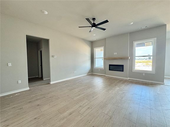 Discover your dream home in the sought-after Osage Hills neighborhood. Benton plan with garage on the left and South facing! 10 ft ceilings in the living/kitchen area, linear electric fireplace in the living, 1 level, LVP flooring throughout the main living areas and primary bedroom, quartz countertops and more. Chef's kitchen boasting frigidaire stainless steel appliances, gas range, pantry, quartz countertops, bar pull handles, large island and gorgeous backsplash. Luxurious primary bedroom features abundant natural light, while the spa-like primary bathroom offers a walk-in shower, double sinks, and spacious walk-in closets. Additional features include three large secondary bedrooms and a separate laundry room. Nestled on a generous lot with covered patio that overlooks the serene sodded, fully fenced backyard. Model home located at 6008 SW Coywolf St- Lot 122.
