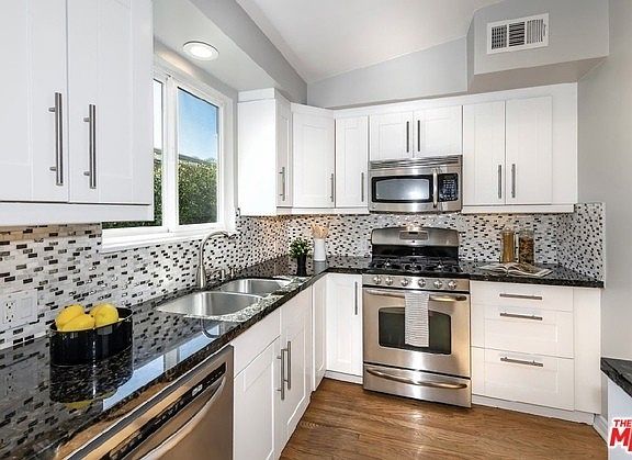 Prestigious Encino Village! The Interior Design is centered on a Central Room encompassing the LR, Dining Area & Kit., making it a great place to relax in a comfortable setting. Extensive remodel. The LR features Hardwood Floors, Open Beam Vaulted Ceilings & Fireplace. Separate Breakfast Nook has been designed with a Bay Window. The Kitchen boasts Custom Cabinets w/Soft Close Doors/Drawers, Pull out Shelves, Pantries, Stone Counters, Stainless Appliances & Under Counter Lighting. Enclosed Patio makes a perfect Family Room & overlooks the Backyard - Perfect for Today's Indoor/Outdoor Lifestyle. BR's have been tastefully updated w/Current Colors and Decor. All Bedrooms have Hardwood Floors & Ceiling Fans. Bathrooms just remodeled with a New Tile Showers, Tile Floor and New Vanity. Outdoor Patio and Newly Landscaped Yard are Perfect for BBQ's, Outdoor Dining. AWARD WINNING ENCINO CHARTER ELEMENTARY! All utilities paid by tenant. 1 year lease