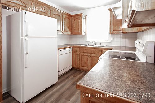 This roomy 3-bedroom 2-bathroom split-entry duplex includes a large double garage. The living room walks out to a deck that is shady in the evening. The eat-in kitchen has plenty of storage. All neutral walls throughout. 2 bedrooms and hall bath on main level, additional bedroom with private bath on the lower level. Lawn mowing is provided.Located near downtown Shawnee and the Merriam business district. Photos are of a very similar unit, some colors/finishes may vary.