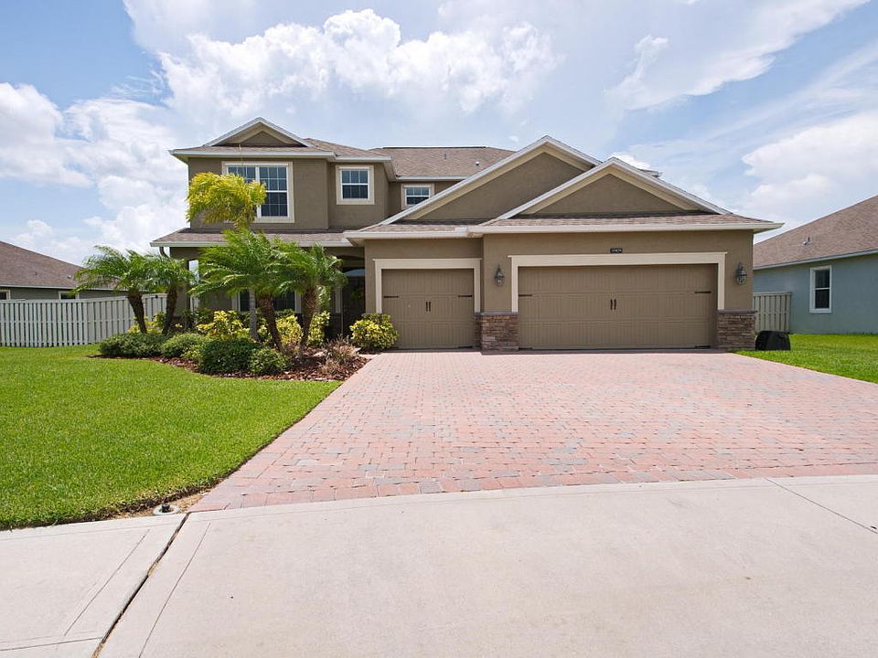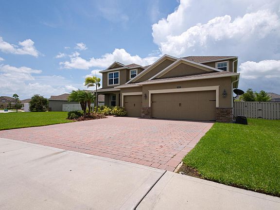 Sunstone 5 bedroom 3.5 bath with large loft pool home with large fenced backyard and 3 car garage! Downstairs main living area has solid bamboo stranded floors. Eat in kitchen with granite breakfast bar and counter tops, brand new smudge proof stainless appliances. Master suite is downstairs. Half bath leads to screened pool with spa and covered patio. Upstairs are 4 bedrooms 2 baths and large loft with built ins. Community is gated. Walk to Manatee Elementary School, Publix and more.