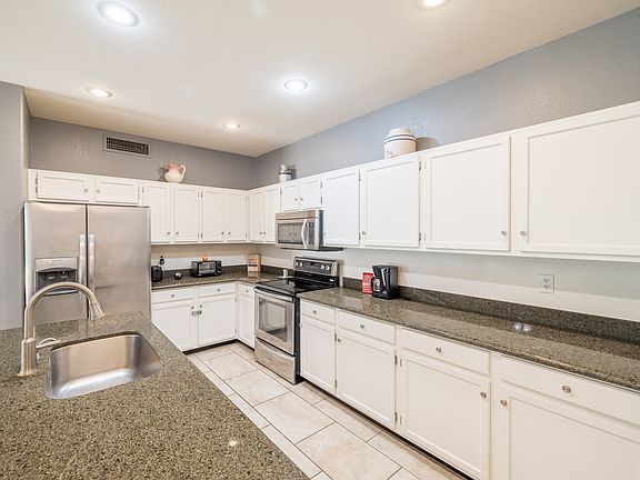 Fully Furnished Kitchen, Pool, Patio, Ceilings fans throughout, electric reclining sofa, steaming TV's, jacuzzi tub.