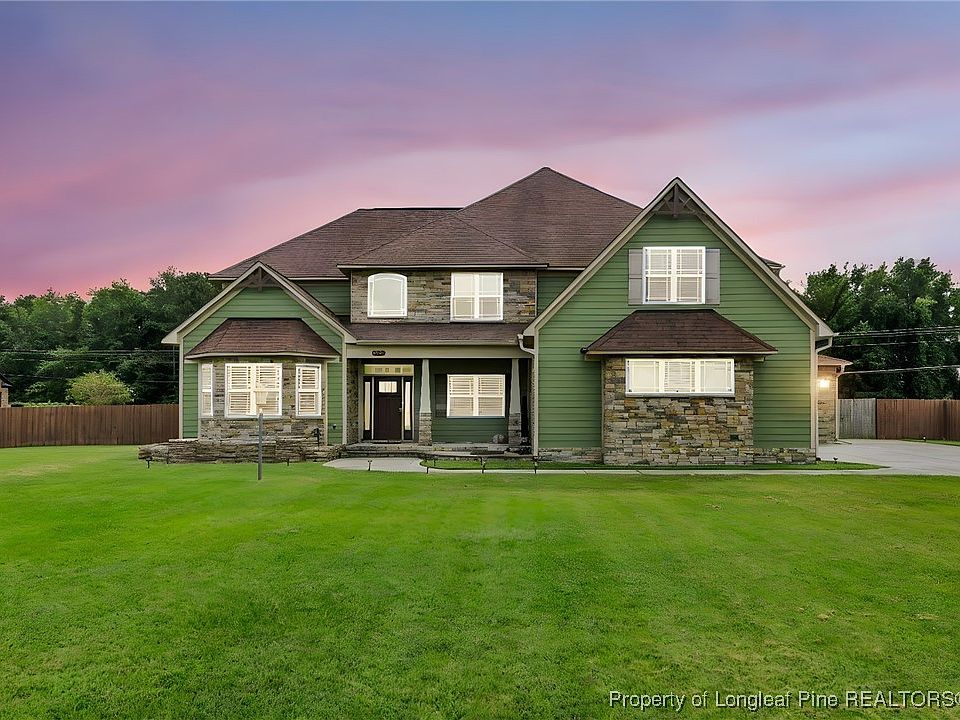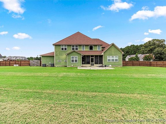Step into the grand 2-story foyer and enjoy elegant wainscoting, crown molding, built-ins, and an interior Juliet balcony overlooking the soaring 2-story great room with fireplace. A dedicated office, study, and media/bedroom add even more versatility. The heart of the home is the gourmet kitchen, featuring a double oven, built-in appliances, ample cabinetry, and designer finishes—perfect for both entertaining and everyday living. Nestled on over an acre, a welcoming front porch, spacious rear screened porch, durable concrete patio, and a private fenced backyard. Additional highlights include a 3-car side load attached garage and a security system. This luxurious home blends traditional elegance with modern amenities in a serene country setting.