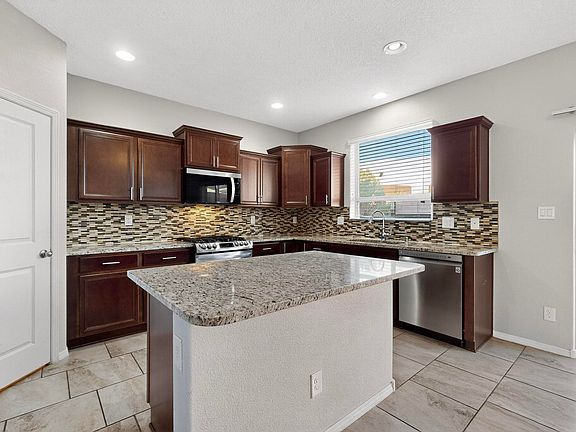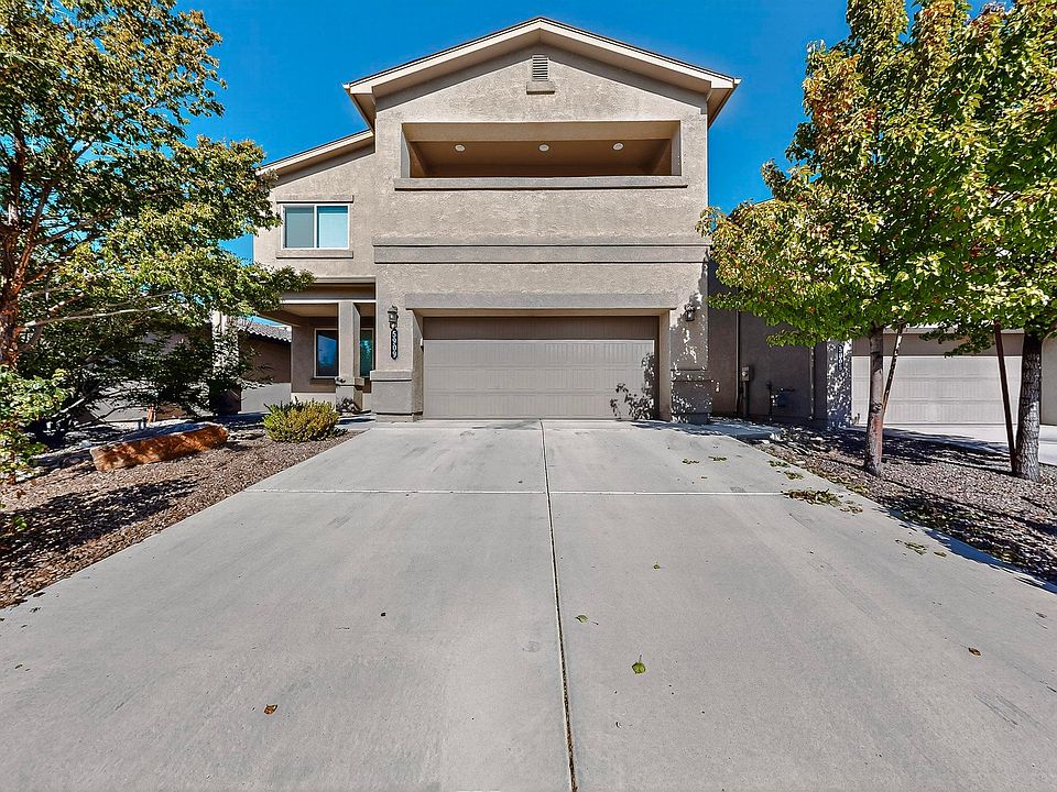 This spacious home offers separated living areas, including a welcoming living room, formal dining room, versatile loft for a great family room and a dedicated office with new laminate flooring which could also become the perfect playroom. The primary bedroom features a private balcony with stunning views of the Sandias and twinkling city lights. Nestled in a prime neighborhood, it's conveniently close to schools, shopping, restaurants, a community center, and lush parks. Recent updates within the last three years include all-new appliances, carpet, paint and fans with light fixtures. The entire yard is landscaped with easy care xeriscape. Come take a look and make it yours!