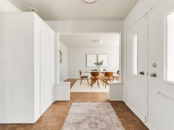 Experience the charm of Macarthur Terrace in this unique split-level home with mid-century character. The entryway features parquet wood floors, brick accent walls, creating a bright reading room or office to the left with an expansive floor to ceiling built in bookcase. On the right, features a spacious dining room or secondary living area flowing seamlessly into the large kitchen with an additional dining space. A dedicated laundry room and bath add convenience on the main level. Upstairs, discover the primary en-suite and two secondary bedrooms, complemented by a shared hallway bath. The lower level offers a generous living room with a Terrazzo tile fireplace, opening to the outdoor patio and expansive backyard. With a two car garage and a prime location for shopping and dining, plus easy access to Northwest Expressway, this home epitomizes comfort and convenience. Ready for you to move in and enjoy!