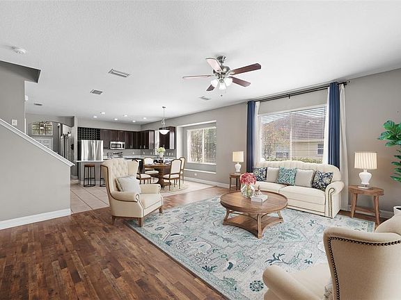 One or more photo(s) has been virtually staged. Welcome to Lake Bernadette – a premier golf course community in Zephyrhills! This expanded single-family home boasts stunning golf course views right in your backyard. Enjoy the fenced in side yard with trees and plants. The open-concept floor plan features a spacious first-floor owner’s suite with a private sitting area, spa-like ensuite bath, and an oversized walk-in closet. Two additional bedrooms are tucked into a separate wing, along with a large living and dining area complete with a built-in wardrobe closet and is a bedroom, offering flexible use as an additional bedroom. Upstairs, a generous media room with full bath can double as a guest suite with built in wardrobe closet. Two main AC units replaced 2019, exterior painted in 2018. Newer laminate floors are very low maintenance. The true highlight is the expansive Florida room with a wall of windows overlooking the greens – the perfect place to relax, entertain, or simply enjoy the serene views. Low HOA fees add to the appeal. * All information believed to be true and accurate* One or more photos have been virtually staged. Lake Bernadette offers resort-style amenities including two pools, golf, tennis, basketball, playground, and fitness center. Ideally located just minutes from I-75, you’ll enjoy easy access to downtown Tampa. Nestled amid the charm of Zephyrhills and only one mile from the Wesley Chapel line, this home is close to top-rated shopping, dining, hospitals, Tampa Premium Outlets, The Grove, The Shops at Wiregrass, and renowned sports academies. One or more photos have been virtually staged.