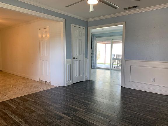 Three Bedroom, 1 Bathroom home in Kenwood Heights area of Rowlett, close to Lake Ray Hubbard, has garage conversion to provide a large 2nd living area. All flooring is either tile or quality wood grain laminate. Crown molding throughout this home adds to its style and elegance. The Primary bedroom has walk in closet, attached bath, and ceiling fan. Two additional bedrooms across the hallway. Updates include: energy efficient double paned windows, ceiling fans in almost every room. stainless steel dishwasher, range, and built-in microwave. (Refrigerator, washer and dryer currently in the at the property are not part of the lease) Utility Room with full sized washer dryer connections. Breakfast room looks out on the large back yard with covered patio and extended patio area for grilling and entertaining. Storage building in back yard has electric mower for tenant use. Application fee of $50 for everyone over 18 who will be living in the home. Tenant to provide refrigerator, washer, and dryer.
