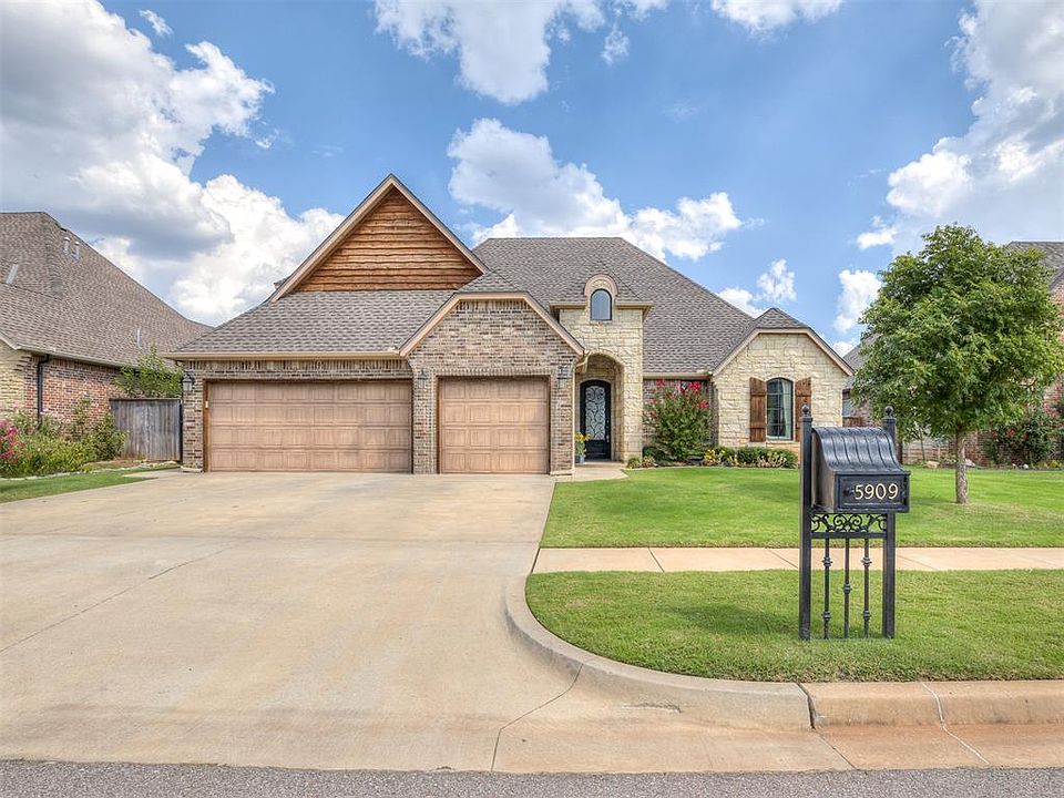 Welcome to this stunning Canterra former model home, thoughtfully designed and loaded with every upgrade imaginable. Built on an engineered post-tension slab, this home showcases rich knotty alder cabinetry, hand-scraped wood floors in the living area, crown molding throughout, elegant 5 1/4" baseboards, and beautifully trimmed headers above soaring 8-foot doors. Your spacious living room showcases an elegant floor to ceiling stone gas log fireplace and large windows for plenty of natural lighting. 1/2 bath located across f/stairway leading to upstairs bonus rm