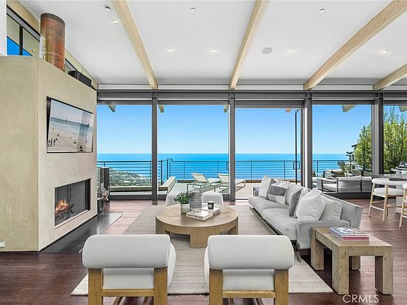 Retreat to a private world of luxury and breathtaking ocean and whitewater views at this spectacular custom home in Laguna Beach. Designed by award-winning architect Mark Singer, the meticulously crafted masterpiece invites panoramic views into dramatic living spaces. Pacific Ocean, canyon and city-light views lend enchantment to dinner parties and relaxed evenings. A long paver-finished driveway with ample parking enhances the feeling of privacy at the residence, which elevates sophistication on a homesite spanning nearly 8,432 square feet. Seemingly above it all, with vistas that encompass colorful sunsets and ever-changing skies, the home is designed to erase the line between indoors and out, with floor-to-ceiling walls of glass that are mitered at corners. On the main level, windows envelop an impressive great room crowned by an arched and beamed ceiling that soars over the living and dining areas. Anchored by a gas fireplace, the great room opens to a wraparound ocean-view deck. Skylights illuminate the adjacent kitchen, where custom Siematic cabinetry, open shelving and Caesarstone countertops are proudly displayed. Chefs will appreciate the convenience and style of a dumbwaiter, large island, glass backsplash, and a fully appointed butler’s pantry. Top-tier appliances include a six-burner Wolf range and a built-in Sub-Zero refrigerator. High-end concrete, wood and stone finishes complement the home’s modern aesthetic, and a fabulous open staircase provides passage to the lower level. Approximately 3,537 square feet, the residence features four ensuite bedrooms and four- and one-half baths. Secondary suites open to view-enhanced decks, and the primary suite, wrapped in walls of glass, appears to float above the sea. The lux primary bedroom and bath boast an oversized walk-in shower with incredible ocean views, a freestanding soaking tub and a spacious walk-in closet. A bedroom on the main level, a security system with cameras, and solar power are featured. This one-of-a-kind home’s enviable privacy belies its close proximity to beaches, restaurants and shopping. Montage Resort and The Ranch at Laguna Beach are just minutes away, award-winning schools serve the community, and Laguna’s village and Main Beach are only moments away. Imagine, for a moment, sharing a residence of this caliber with the people you love...make it yours today.