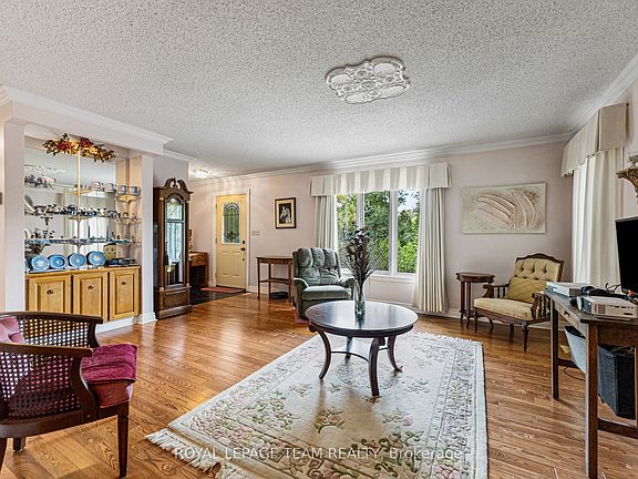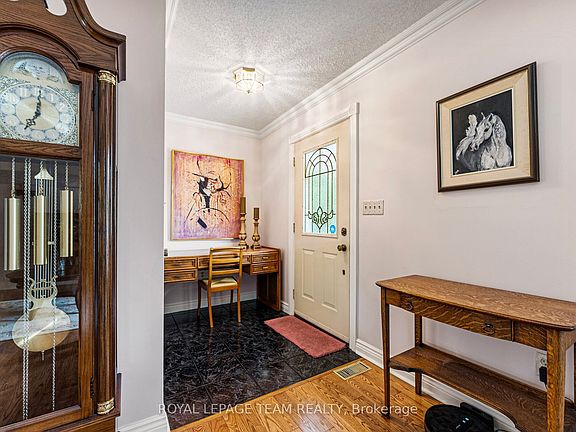 Separate dining roomFully enclosed solariumGenerous primary suiteWalk-in closetElegant crown mouldingStucco ceilingsFully finished lower level