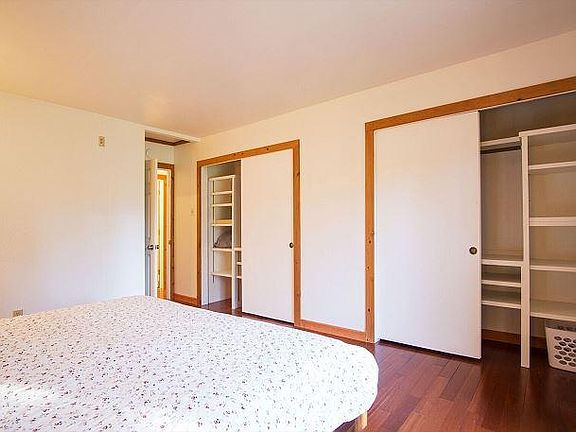New furnishingsCozy river rock fireplaceTowering treesMattresses and linensHuge picture windowsRoomy master bedroomNew wood floors