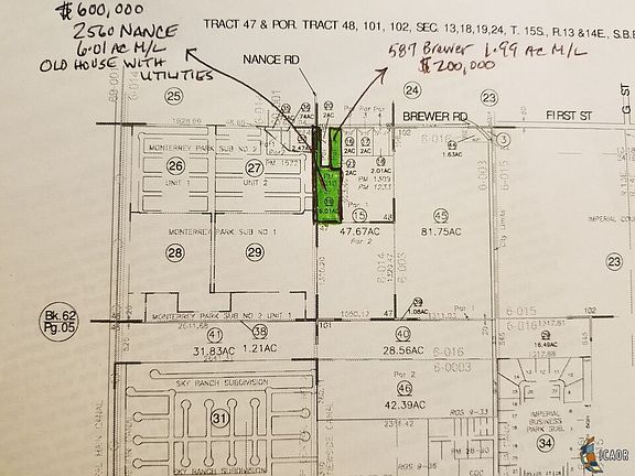 Imperial, Ca. Calling builders: 1.99 acres M/L of Residential land zoned RL (Residential Low density). You can build 2 homes on an acre here. Potential here for nice size ranch or perfect for the investor builder to build nice size estately homes on very nice size lots. Lots of new home developments surround this area but homes are on much smaller lots. Not with the low density build restriction providing opportunity for homes with large lots. Area is centrally located and close to all City amenities but located in an area that has the country feel. Close to neighboring citys of Brawley and El Centro. Sellers are motivated and have an adjacent 6.01 ac M/L for sale as well (2560 Nance Rd APN 064-300-019). Property sold "As-Is". Seller will make no repairs. Seller makes no warranties except as to title. Buyer to do their due diligence/investigations to satisfy themselves.
