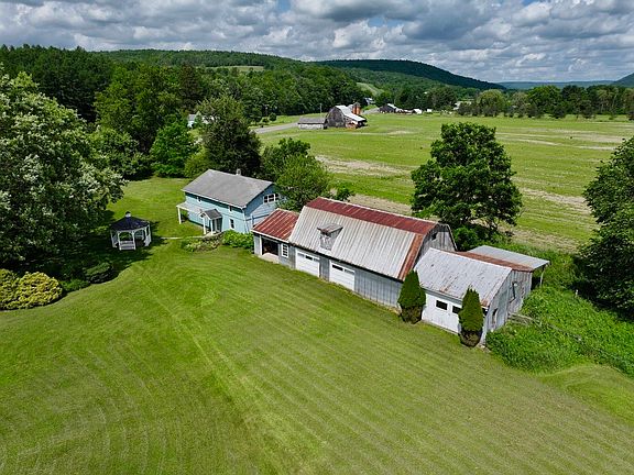 Versatile 17+ Acre Country Retreat with Income Potential! This one-of-a-kind property offers a rare blend of comfortable living, income opportunity, and country charm — all set on over 17 beautifully landscaped acres. The main home is a spacious 3-bedroom, 2-bath ranch featuring an attached garage, cozy fireplace, pellet stove, and French doors opening from the primary suite to the backyard. The bathrooms boast stylish bamboo laminate flooring, and there’s plenty of storage throughout. Enjoy a partially fenced yard perfect for pets or play. A separate 2-bedroom, 2-bath mobile home with its own driveway, garage, and deck makes a perfect guest house, in-law setup, or rental for added income. The property also includes a 40x40 two-story heated outbuilding, ideal for a home business, studio, or retail space — previously used by several successful ventures. For equestrian or hobby farm enthusiasts, the 22x92 metal two-story barn features 2 Priefert horse stalls with direct access to ~4 acres of pasture. There's even more value with ~8 acres of marketable Timothy hay, and the grounds are a nature lover’s dream, complete with ornamental water gardens, specimen trees, lilac and apple trees, daylilies, daffodils, and a gazebo offering breathtaking views. This property truly has something for everyone — whether you’re seeking a private sanctuary, multi-generational living, or income-producing potential. Priced to sell — don’t miss your chance to own this Upstate New York gem!