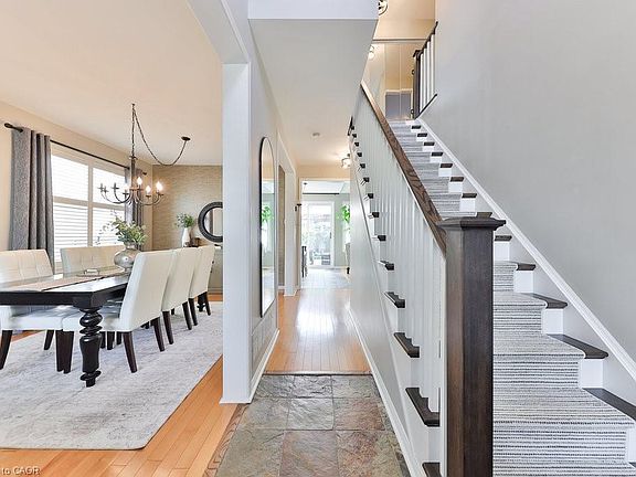 Welcome to 591 Caverhill Crescent Bright, Updated & Move-in Ready in Milton's Coveted Clarke Neighbourhood Tucked away on a quiet crescent in the heart of Clarke, this beautifully maintained 3-bedroom, 4-bathroom detached home delivers a perfect blend of space, comfort, and modern functionality. Just minutes from top-ranked schools, scenic trails, parks, shopping, and major commuter routes including James Snow Parkway and Hwy 401, this home checks all the boxes for families and professionals alike. Inside, you're greeted by an inviting layout featuring hardwood flooring and abundant natural light. The open-concept living and dining area offers a stylish yet practical flow for entertaining or everyday life, while the cozy family room anchored by cathedral ceilings and a gas fireplace adds warmth and character. The eat-in kitchen is both functional and charming, offering modern appliances, ample cabinetry, and a walkout to the backyard deck with gazebo and gas barbecue a perfect setting for summer gatherings or a quiet morning coffee. The private yard offers low-maintenance comfort with room to relax or play. Upstairs, the spacious primary retreat features a walk-in closet and a well-appointed 4-piece ensuite. Two additional bedrooms and a second full bath provide flexible space for kids, guests, or a home office. The finished basement expands your living area with a generous recreation room, powder room, and laundry zone ideal for movie nights, a playroom, or a home gym. Additional highlights include inside garage entry, central air, and parking for three cars. Stylish, sun-filled, and ready to welcome its next chapter this is the one you've been waiting for.