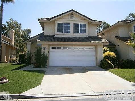 Live in this prime gated community of the Greens in Wood Ranch! Newer home on quiet street, well landscaped with colorful flowers! Laminate wood floors with vaulted ceilings! Newer appliances in kitchen with recessed lights & tiled floors! Light and bright with great open floor plan! Fam.room w/recessed lights, fireplace and ceiling fan! Vaulted ceilings in Master suite w/great views! Master bath has Roman tub, separate shower and double sinks! Built-in cabinets in garage w/epoxy coated flooring! Private yard has mini golf putting green, Koi pond and views over the community tennis courts! Great neighborhood you can call home!