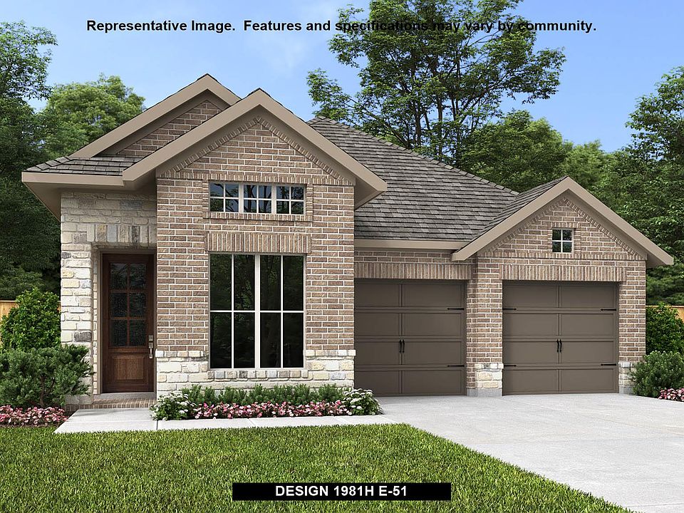 Welcoming front porch leads to side entry with three windows along one side. Home office with French doors frames entry. Open family room extends to dining area with walls of windows. Kitchen features an island with built-in seating space and a corner walk-in pantry. Primary suite features windows with backyard view, double door entry to the primary bathroom, dual vanities, garden tub, separate glass enclosed shower, and a spacious walk-in closet. Secondary bedrooms with walk-in closet, linen closet and a utility room complete this design. Extended covered backyard patio. Mud room just off the two-car garage.