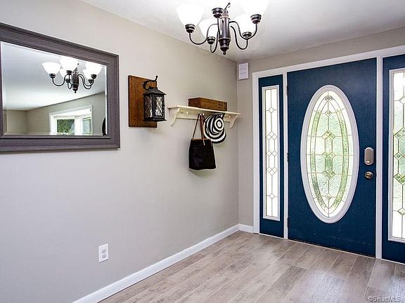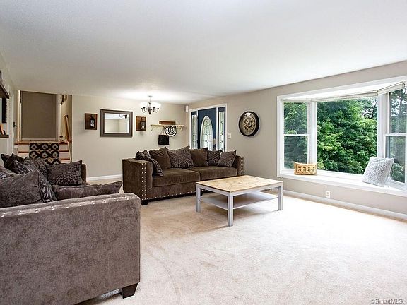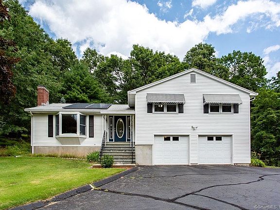 Set on over 2 acres, this 3 bedroom, 2 1/2 bath spilt level home is private setting, yet close to town, shopping and highways Located in Buttonball School district. Large living room with new carpet and fireplace. Large eat in kitchen. Beautifully finished hardwood in all bedrooms. Master bedroom suite with full bath Great family room space with access to back patio and private yard. Additional workshop space in basement. Attached 2 car garage. Central Vac. Public water connected. Active solar keeps electricity costs down