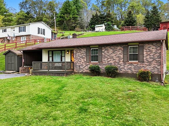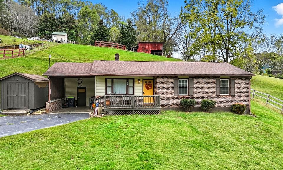 Walled in carportBrick homeSmall single-stall barnCozy kitchenNewer flooring