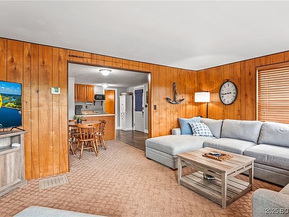 Located in Jackson Hollow Cove on the 3 mile marker of the Little Niangua and just off of historic state highway EE, this one bedroom, one bathroom cabin with its 80' of shoreline and a wonderful two-well dock comes with two decks that offer plenty of room so everyone can enjoy the incredible the incredible views and sunsets. This completely turnkey cabin has been kept in pristine condition by the owners and is smartly furnished making the most of the square footage both inside the property and outside. Just a short walk down a very gentle lot and you're at the 2 well dock with a swim platform, a boat hoist and double PWC lift included as well. The lower level boasts plenty of storage for lake toys and/or tools and also houses the stacked washer / dryer and additional refrigerator. Plus, you also have your very own private boat ramp to use. And in the Welcome Subdivision, nightly rentals are not allowed, so this peaceful retreat stays just that: peaceful. Whether you're looking for a charming lakefront getaway or a starter fulltime lakefront home, 591 Welcome Drive is one to check out.