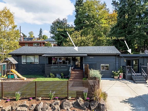 Smart start in Hillman City! Remodeled mid-century home with a separate MIL unit perfect for buyers seeking income to offset their mortgage. Enjoy new kitchens and baths, solid white oak hardwood, fresh paint inside and out, updated systems, tankless water heater, and a newer roof—move-in ready with peace of mind. Incredible use of space, materials chosen with attention to a timeless organic modern vibe. Sweet yard with easy maintenance, entertainment area, and sunshine. The MIL offers rental options, guest quarters, home office, or room to grow. Blocks from coffee, bakeries, dining, transit. This is a vibrant, walkable neighborhood focused on community and culture. Urban convenience and a quiet block with easy commute in all directions.