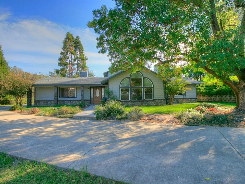 This lovely home sits on a beautiful 2.1 acre usable parcel, fenced and gated. All living on one level with a game room and awesome theater room upstairs. Master on one side and 2 other bedrooms on separate side. Nicely updated kitchen with granite counters and stainless appliances. Fruit trees, storage sheds and irrigation water. 3 car garage with extra deep side. Desirable Del Oro High School & school district. Must see!
