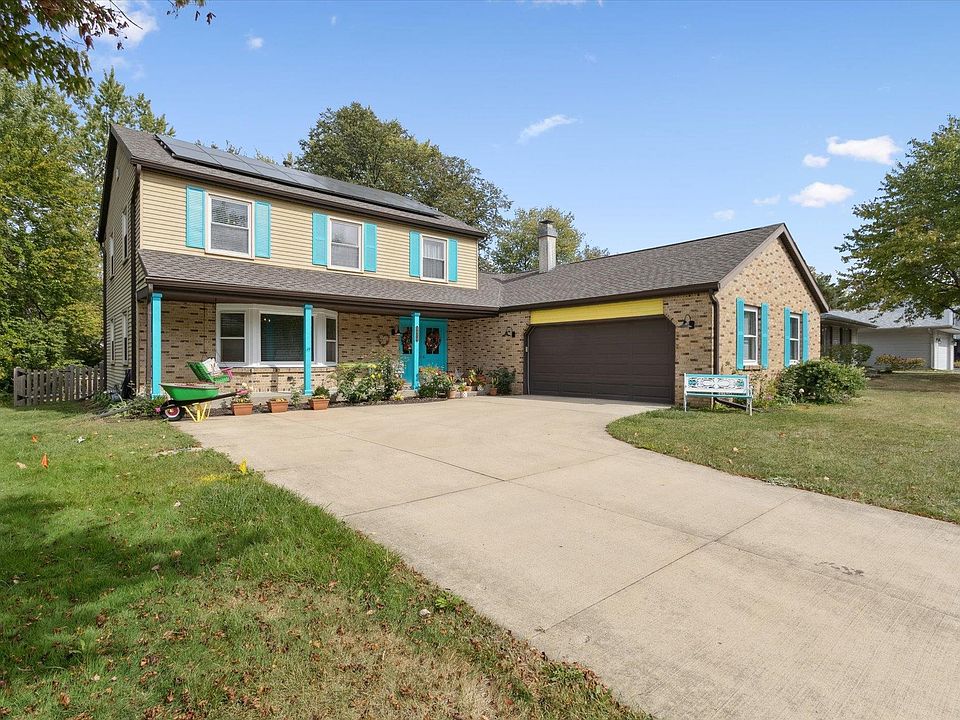 Welcome to this stunning two-story gem in the Creekside neighborhood! From the moment you pull into the spacious 2-car garage, you'll feel right at home. Inside you will find a bright and inviting layout featuring a large formal living room and an elegant formal dining room, perfect for entertaining. The peninsula-style kitchen is a showstopper with granite countertops, hardwood and tile flooring, and plenty of space to cook and gather. Cozy up in the family room by the gas fireplace, or head downstairs to the finished basement complete with a wet bar-ideal for game nights and hosting guests! Upstairs, you'll find three large, equal size bedrooms and two full bathrooms that have been newly renovated, while the main floor offers a convenient half bath. Enjoy the mix of hardwood, tile, and plush carpeting throughout. Energy-efficient owned solar panels (not leased or loaned!) keep utility costs low and eco-friendly living high. Outside your door, the Creekside community delivers fantastic amenities including a sparkling swimming pool, tennis courts, and a fun-filled playground. This home truly has it all-style, comfort, and community charm!