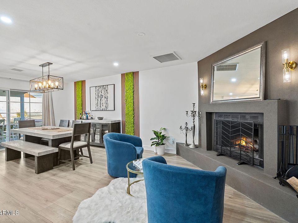 The bright, open layout connects the living, dining, and kitchen areas for seamless entertaining. Sleek finishes, a flex/office room, and stylish lighting add to the home's modern appeal. The primary suite serves as a true retreat with its updated bathroom and feature wall.