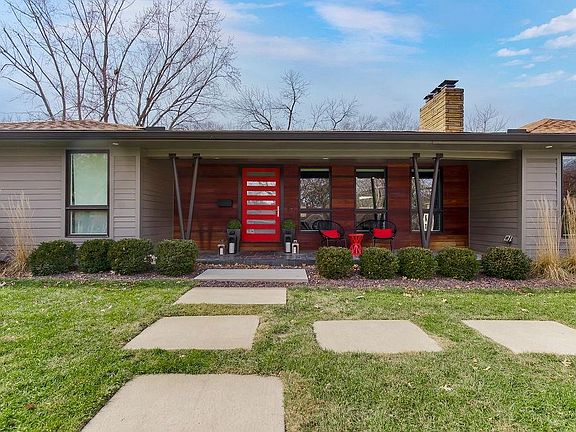 This open concept mid-century style home features great entertaining spaces on the main level. From the Wet Bar in the formal living room to the oversized Kitchen Island and into the exquisite dining room that opens to a trex deck with outdoor kitchen amenities including built-in grill and a sprawling backyard. A modern dream home in the heart of Reinhardt Estates, boasting an ideal and highly sought-after location in the Shawnee Mission East School District. Enjoy the convenience of a short Distance to Plaza, KU Med, Menorah hospital and Pembroke. This renovated ranch-style house, featuring 3 bedrooms on the main level, 2 bedrooms on the lower level and 4 bathrooms, is a true gem on a sprawling lot. Upon entering, you'll be greeted by an open-concept living space with vaulted ceilings, seamlessly connecting the kitchen, dining, and living room. Four fireplaces will set the mood to enjoy those winter nights cozy at home. The kitchen is a chef's paradise, with a nearly 16-foot island, luxurious quartz countertops, custom cabinetry, and designer light fixtures. The mudroom includes built-in cabinets for extra storage and organization. Every detail has been carefully considered, making it a perfect space for both everyday living and entertaining. The primary suite is a sanctuary of comfort, offering a walkout patio for tranquil moments. The primary bathroom is a masterpiece, complete with an oversized shower and dual sink vanity. Newer windows throughout, allowing ample natural light to fill every room. Oak hardwood floors, much of them original to the home, grace the entire main level, adding warmth to the space. The lower level offers the perfect space for game nights with a Wet Bar and new wood paneling accent wall with a fireplace to set the mood. Don't miss the opportunity to own a piece of paradise in this most desirable location. Call agent for more details.
