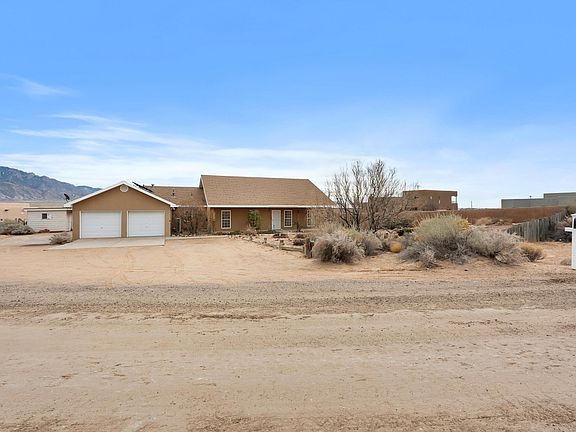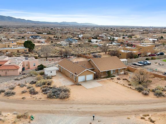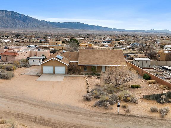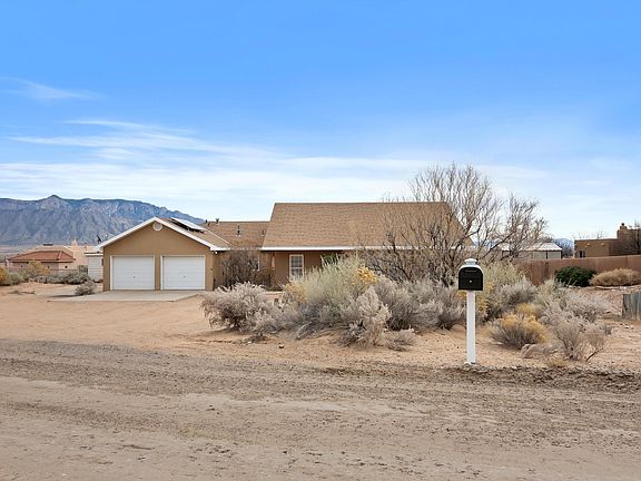 Discover your dream home at 5910 Rio Salado Loop in Rio Rancho! This custom-built residence with steel frame sits on a spacious 0.5-acre lot, offering the perfect blend of comfort and style. Step inside to find brand new vinyl flooring throughout and freshly painted walls, creating a clean and modern atmosphere. The heart of this home is the kitchen, featuring a large island perfect for entertaining or family gatherings. Retreat to the expansive master bedroom with its luxurious en-suite bathroom for ultimate relaxation. Two additional bedrooms share a convenient Jack and Jill bathroom, ideal for family living or guests. Step outside onto the huge covered patio and be mesmerized by breathtaking views of the Sandia Mountains. This outdoor oasis is perfect for al fresco dining or relaxing.