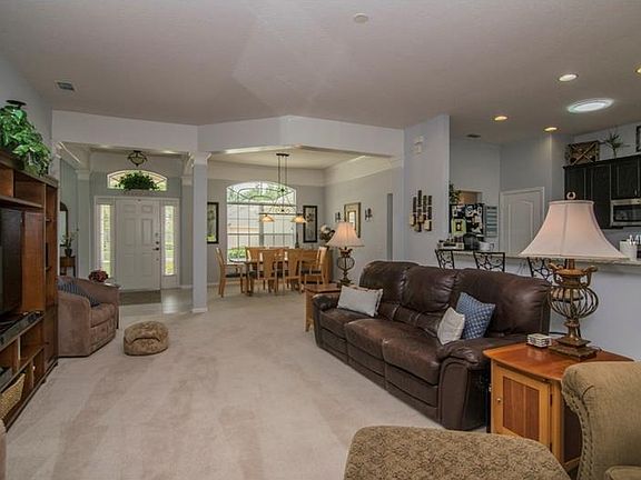 BEAUTIFUL OPEN & BRIGHT GOLF COURSE HOME 4 BED, 3 BATH, 2 CAR GARAGE. THE THREE-WAY SPLIT PLAN HOME OFFERS A HUGE GREAT ROOM & FORMAL DINING ROOM W/ CROWN MOLDING AND 10 FT CEILINGS. THE SPACIOUS KITCHEN IS OPEN TO GREAT ROOM WITH GRANITE COUNTERS, BEAUTIFUL UPGRADED 42" CABINETS, RECESSED LIGHTING AND STAINLESS STEEL APPLIANCES. ENJOY ENTERTAINING IN THE LARGE GREAT ROOM W/ TRIPLE SLIDERS TO THE SCREENED LANAI THAT LOOKS OUT TO THE LEXINGTON OAKS GOLF COURSE. SIZABLE MASTER SUITE WITH A LARGE WALK-IN CLOSET. RELAX IN THE MASTER BATH'S LUXURIOUS GARDEN TUB, PLUS A SEPARATE SHOWER, LINEN CLOSET AND HIS/HER DUAL SINKS. THE GUEST SUITE IS LOCATED AT THE REAR OF THE HOME AND OFFERS PRIVACY & A HALL BATH WITH LANAI ACCESS. SOLATUBE SKYLIGHTING, CEILING FANS, AND IRRIGATION SYSTEM COMPLETE THIS HOME.---LEXINGTON OAKS HAS A SCENIC 18 HOLE GOLF COURSE (FEE TO PLAY) W/CLUBHOUSE RESTAURANT, COMMUNITY CENTER, COMMUNITY POOL, FITNESS CENTER, PLAYGROUND, TENNIS COURTS, SPORTS FIELDS & DAY CARE. CONVENIENTLY LOCATED NEAR THE INTERSTATE, SHOPPING & DINING AREAS!