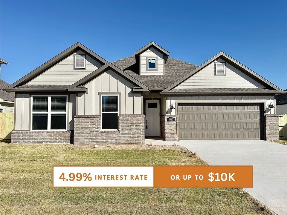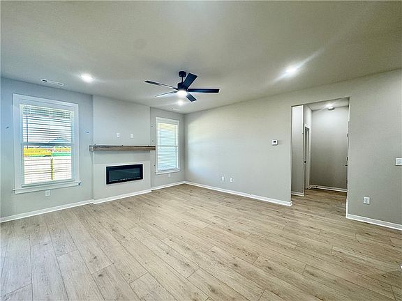 Fence, blinds and gutters included! Discover your dream home in the sought-after Osage Hills neighborhood. Clinton plan with garage on the right & South facing! 9 ft ceilings, linear electric fireplace in the living room, LVP flooring throughout the main living areas and primary bedroom, quartz countertops and more. Chef's kitchen boasting frigidaire stainless steel appliances, gas range, pantry, quartz countertops, bar pull handles, large island and gorgeous backsplash. Luxurious primary bedroom features abundant natural light, while the spa-like primary bathroom offers a walk-in shower, double sinks and spacious walk-in closets. Two secondary bedrooms on the main level, a 4th bedroom upstairs that would be a perfect bonus room & a separate laundry room. Nestled on a generous lot with covered patio that overlooks the serene sodded, fully fenced backyard. Sturdy concrete siding & brick! Model home located at 6008 SW Coywolf St- Lot 122.