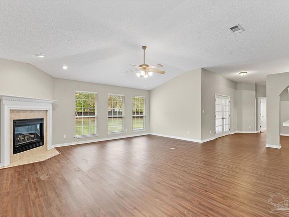 This home features lighted niches, arched doorways, plant ledges, columns, & with high ceilings. Upon entering this home, you're greeted by a large foyer, a stunning open split floor plan & freshly painted walls. Formal dining room opens to the kitchen & great room and features columns & plant ledges with luxury vinyl plank flooring. This spacious kitchen boasts an abundance of counter space, cabinets, a breakfast bar, plant ledges, & appliances. A large walk-in pantry & the laundry room are conveniently located off the kitchen. There is an open view from the kitchen to the breakfast area and the great room. The great room is spacious with a beautiful corner fireplace & lots of windows. You will love the openness of the great room to the kitchen, breakfast nook & dining room! Off the great room you have French doors leading to the sunroom/bonus room finished with bead board, tile flooring & French doors leading to the open patio. The large master bedroom is located at the back of the home featuring a tray ceiling with a lighted ceiling fan. This room has plenty of space for your king size bed & other furniture! The master bath will spoil you with a deep soaking garden tub, separate shower, double vanity with Avonite countertops, private commode closet & a HUGE L-shaped walk-in closet with ample space. The 3 additional bedrooms are at the front of the home off the foyer. Two of the additional bedrooms are attached by a Jack & Jill bath with pocket doors. The bath has a nice sized linen closet as well. Both bedrooms have walk-in closets; one quite large & with a full size window. The 3rd bedroom is across the foyer & has a large closet & double window. The powder room is off the hallway across from the 3rd bedroom & features a stylish pedestal sink & high ceilings. The backyard is privacy fenced & spotted with beautiful shade trees. You will enjoy being outside on the 12 x 10 open patio in this private back. New roof to be installed before closing.