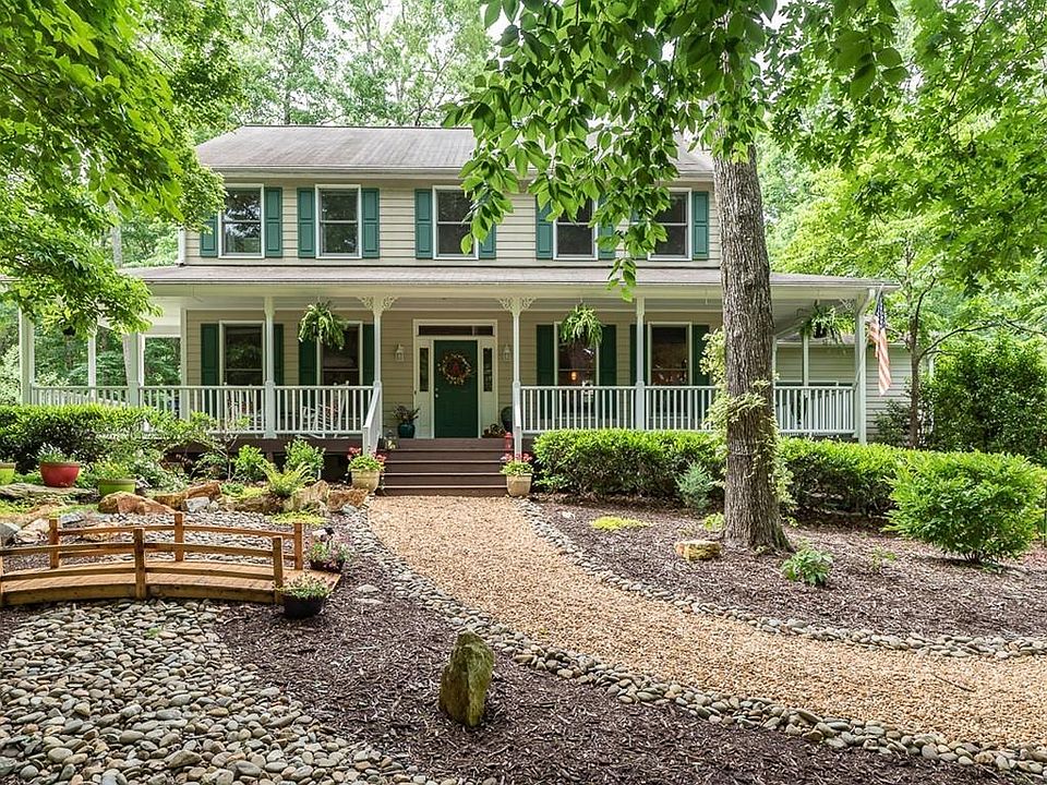 Pristine setting awaits you with this private 2.14 Acre 2 Story w/Wonderful Wrap around front porch. Home features a number of inviting features including Porcelain Counters, Walk in Pantry, Gas Log FP in spacious Breakfast, Hardwoods on the main, Skylights in Master and Hall Baths, Dual Vanities, Jetted Tub and Sep. Shower with Tile, Spacious Master Bedroom w/Cathedral Ceiling, Extensive Landscaping, Permitted Storage Building with Power, Garden Area and much more!