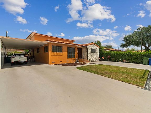 Beautiful and spacious 2,568 SQ.FT. home centrally located on the outskirts of Coral Gables. The residence features an updated PVC plumbing and interior with new vinyl flooring, french doors to patio access, multiple walk-in closets, fully fenced for security with two gated driveways for generous parking, double sinks in the master bathroom, and 3 new central ACs. This 6 bedroom 3 bathroom home has exterior and interior access to the second floor where 2 bedrooms and 1 bathroom are located. The low-maintenance patio has many fruit trees and is great for entertaining and has a shed for storage with AC. This property is perfect for a big family or as an AIRBNB opportunity! Located minutes from 826 Expressway, Turnpike, Coral Gables, Miami International Airport, and Beaches.