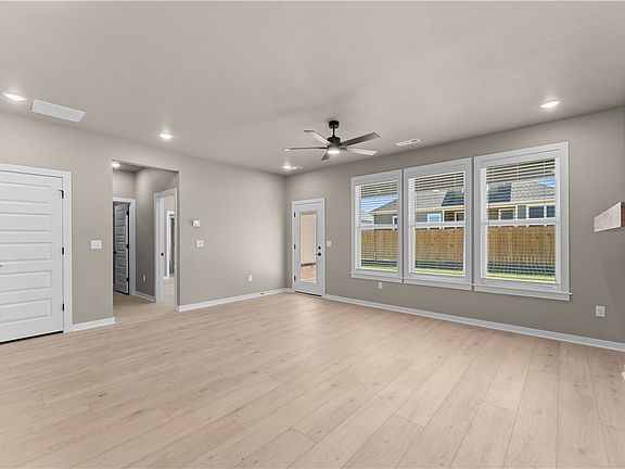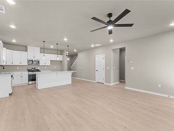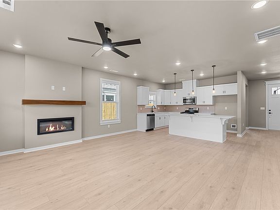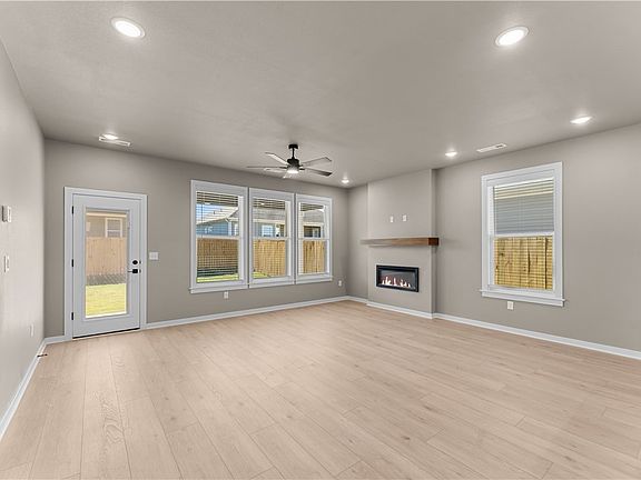 Fence, blinds and gutters included! Discover your dream home in the sought-after Osage Hills neighborhood. Emmet plan with garage on the left and North facing! 9 ft ceilings, linear electric fireplace in the living room, LVP flooring throughout the main living areas and primary bedroom, quartz countertops and more. Chef's kitchen boasting frigidaire stainless steel appliances, gas range, pantry, quartz countertops, bar pull handles and large island, all complemented by gorgeous backsplash. Luxurious primary bedroom features abundant natural light, while the spa-like primary bathroom offers a walk-in shower, tub, double sinks, and spacious walk-in closets. Additional features include a secondary bedroom downstairs, two large bedrooms upstairs and a separate laundry room. Nestled on a generous lot with covered patio that overlooks the serene sodded, fully fenced backyard. Sturdy concrete siding & brick! Model home located at 6008 SW Coywolf St- Lot 122.