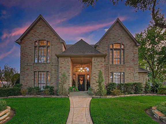 Luxury living meets comfort in this stately brick home that blends timeless elegance with modern design. From the moment you arrive, the impressive curb appeal sets the tone. Inside, a grand foyer with hardwood floors and a sweeping staircase welcomes you. The main level offers a private office with French doors, a formal dining room, and a cozy living room with fireplace and wainscoting. The gourmet kitchen boasts a quartz island, white cabinetry, and farmhouse sink. The downstairs primary suite features a spa-like bath with soaking tub, walk-in shower, and spacious walk-in closet. Upstairs includes generous secondary bedrooms and well-appointed baths. Outdoor living shines with a covered patio for dining and entertaining, overlooking a sparkling pool and landscaped yard. A long driveway and detached garage provide ample parking. More than a residence, this is a private retreat built for luxury, comfort, and style.