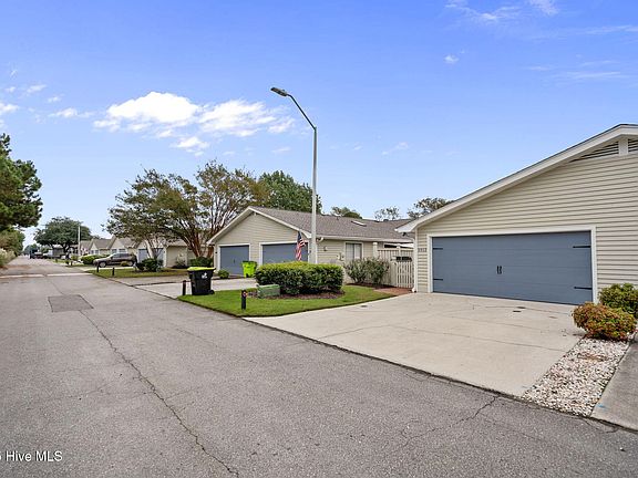 Enjoy low-maintenance living in this 3 bedroom, 2 full bath villa in Inland Greens. The home offers 1,550 square feet with an open layout featuring luxury vinyl plank flooring, smooth ceilings, crown molding, vaulted ceilings, and skylights throughout. The roof and skylights were replaced in 2025, and exterior painting by the HOA-including the home, fence, and garage doors-is scheduled for early 2026. The kitchen includes a bar overlooking the dining and living areas, with a washer, dryer, and refrigerator all conveying. The full-size stackable LG ThinQ washer and dryer are 3 years old and conveniently located inside (most units in the community have them in the garage). A sunroom off the main living area provides year-round comfort with HVAC and built-in shelves. It opens to a large brick patio with views of the community green space. The primary suite features dual closets, an en suite bath, and private access to the sunroom. Additional highlights include a two-car garage and space for outdoor seating or gardening. Community amenities include a pool, clubhouse, walking trails, pickleball and tennis courts, boat storage, and year-round community activities. The HOA handles exterior maintenance. Conveniently located near Mayfaire, Airlie Gardens, and Wrightsville Beach, and only 15 minutes from downtown Wilmington. Don't miss this opportunity-schedule your private showing today!