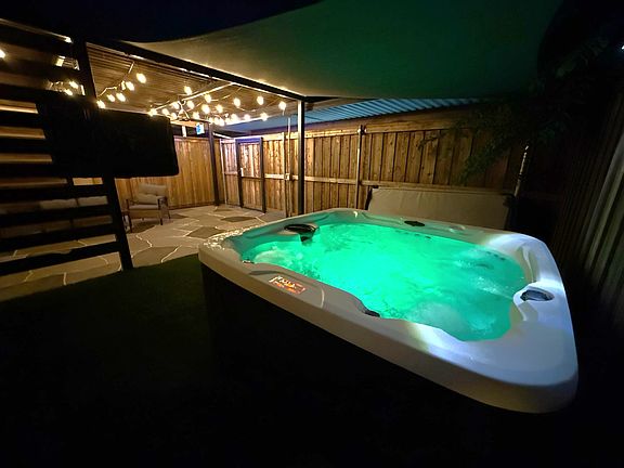 Stylish fireplaceUpdated bathPrivate backyard retreatOutdoor sitting areaStainless steel appliancesHeated spaTile floors