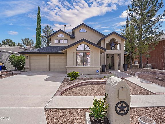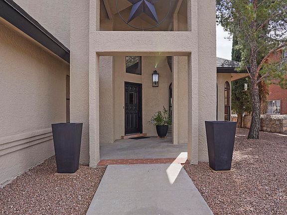 Nestled in the foothills, under the Thunderbird crest of the Franklin Mountains, this traditional home is beautiful. 5 bedrooms, 2.75 bathrooms, with 3 bedrooms down. Upstairs, a Bedroom Suite with a cozy fireplace and a sitting area w/ built-in bookshelves. Fantastic decked patio off the bedroom w/ sunrise views. Bathroom has 2 separate vanities, 2 sinks, 2 closets and a double shower with dual entry and a jetted tub! Guest room has windows designed to capture amazing views! Renovated kitchen with stainless steel appliances and granite counter tops opens into the breakfast area and the den. A formal living and dining room area with Intricate real wood trim and finishes found throughout the home. Step outside to the covered patio and manicured yard; Gazebo, with ceiling fan and party lights to enjoy outdoor entertaining. Lots of recent upgrades! This home will show you that the appeal does not stop at the curb as the TLC and care given throughout this home is undeniable. . Make an appt to see it today!